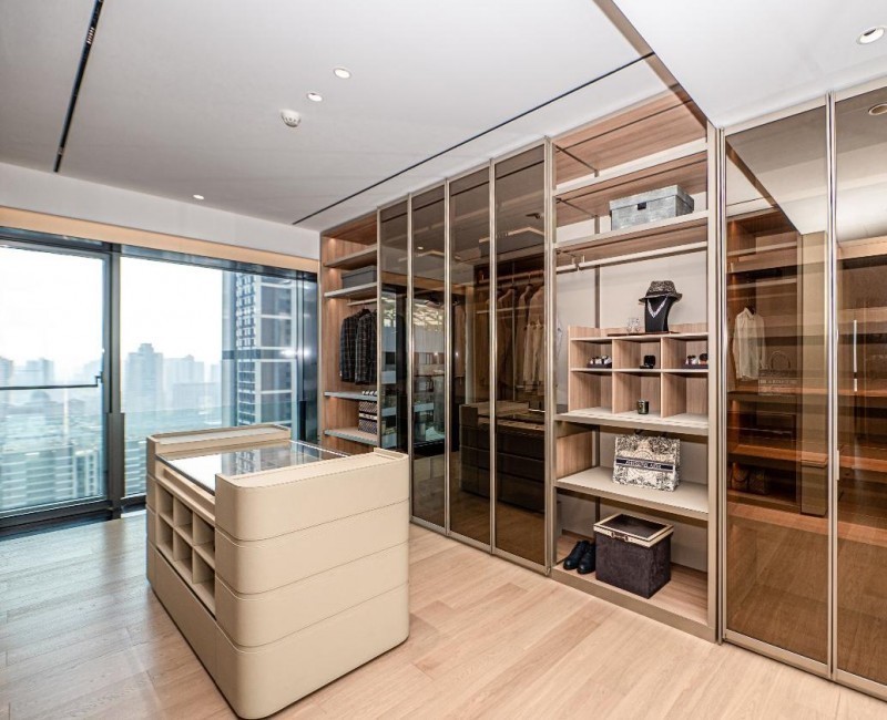 在顶层复式中,客厅、餐厅、社交型酒吧中岛、独立恒温酒窖、书房、MINI吧、独立健身房等多维空间的共存,满足了业主多元化的生活需求。