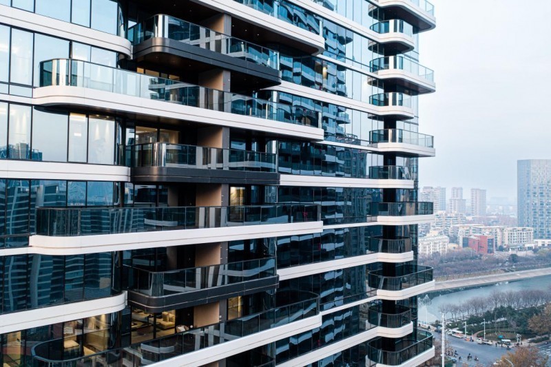 在这样的时代背景下,未来天奕立面设计脱颖而出,以其独特而极致的采光和视野引领豪宅市场,其92%的玻璃幕墙占比至今无产品可以打破。户户皆拥有头排河景视野,错层露台设计更是独一无二。